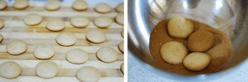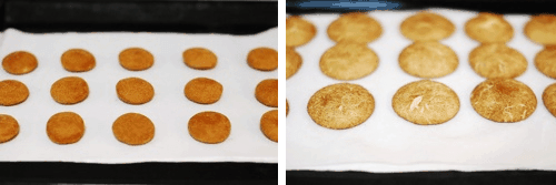 - Once the dough is ready, break off small, walnut-sized pieces of the dough and roll these in cinnamon sugar, making sure each ball is completely coated. Place the dough balls on to the prepared baking sheets and arranging them4-5 cm apart to give them space to spread during baking.