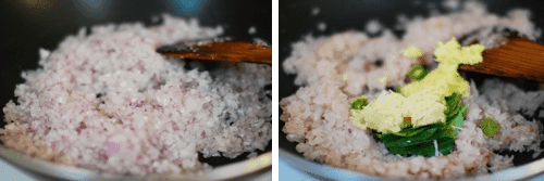 Heat oil in a wide pan. Add the chopped onion and cook till it becomes soft and starts browning. Add chopped ginger, garlic and green chilli. Cook for 2-3 mins or till the raw smell goes…