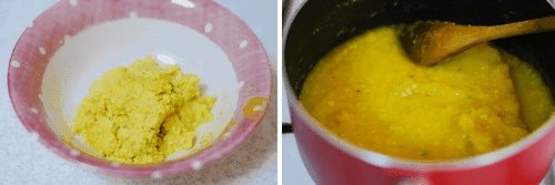 - Cook mathanga with 2 cups water and salt. When it is cooked well, mash it well.