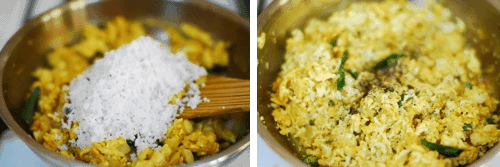When the eggs are half cooked add coconut and jeera. Mix well. Cook for 3-4 mins on low flame. Add 1/2 tsp crushed pepper and mix well…