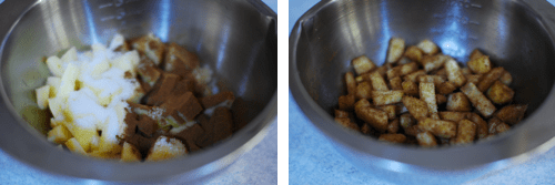 Prepare apple mixture by combining apples with 2 tablespoons granulated sugar and remaining 1 teaspoon of cinnamon and mix until well combined. Set aside.