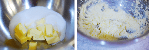 In the bowl of your stand mixer fitted with the paddle attachment combine the butter and 2/3 cup granulated sugar on medium speed for 2 minutes.