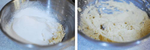 Turn mixer to low and add in the flour and baking powder until incorporated.