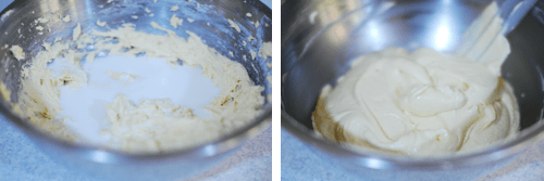 Add in the milk and mix until just combined. Don’t over-mix.