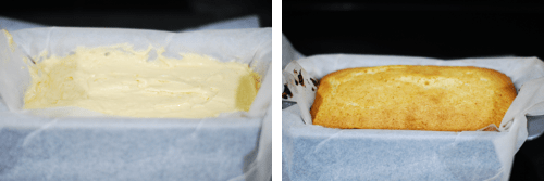 Pour batter into a greased and lined 9x5 loaf pan. Bake for approximately 45 minutes or until a cake tester inserted into the center of the loaf comes out clean. If loaf does not see done at 45 minutes but is browning, foil can be placed loosely over the top to allow more baking time without additional browning. Remove from oven and allow to cool.